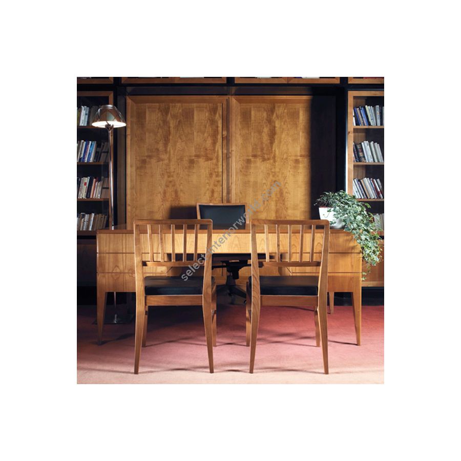 Flaminia’s design is timeless. High-quality milling of the surfaces envelops the Flaminia desk, giving it elegance, while the slim legs with beveled corners slender and make the structure light. Suitable for the office space, but also for the home setting due to its small size, Flaminia features a large wooden work surface and drawers, which can be opened with brass handles.