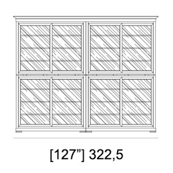 The Biedermeier modular wall unit system was created with the aim to offer furniture in an elegant and timeless style. Designed by the MAAM Research Center, it is the result of extensive studies on the history of furniture. The drawing shows a version of the typical Venetian style, which combines the simplicity of the local furniture with the Biedermeier furniture lines of beyond the Alps. Set in classic and contemporary contexts, the Biedermeier bookcase features a classic design, simple but refined in its details.