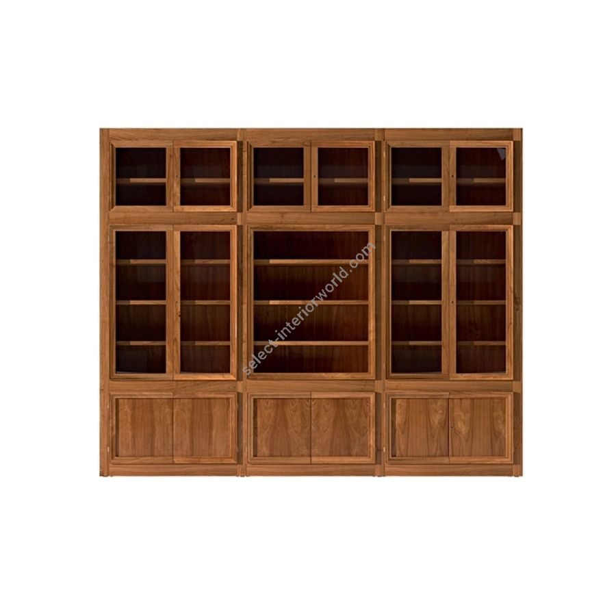 Maschera wall unit composed of three elements, frame and doors made of cherry wood. Three wooden doors and 5 glass doors. Internal shelves are adjustable.