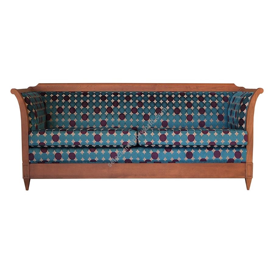 The Verona living room furniture collection is composed of several different elements all characterized by the peculiar shape of the high armrests, and back. The frame is made of carved solid cherry wood, which defines the outer perimeter of the Verona armchairs and sofas. Accurately upholstered and finished with double ribbing in the same material.