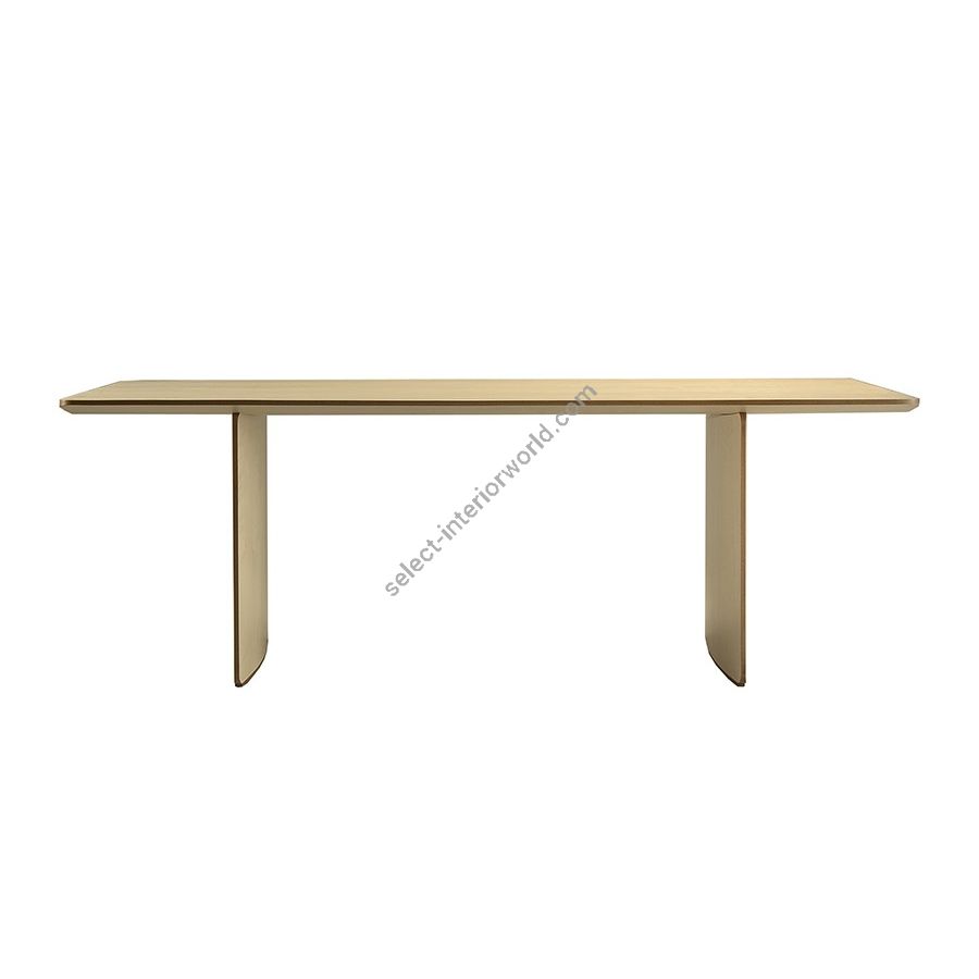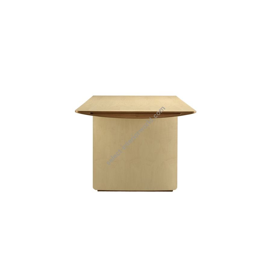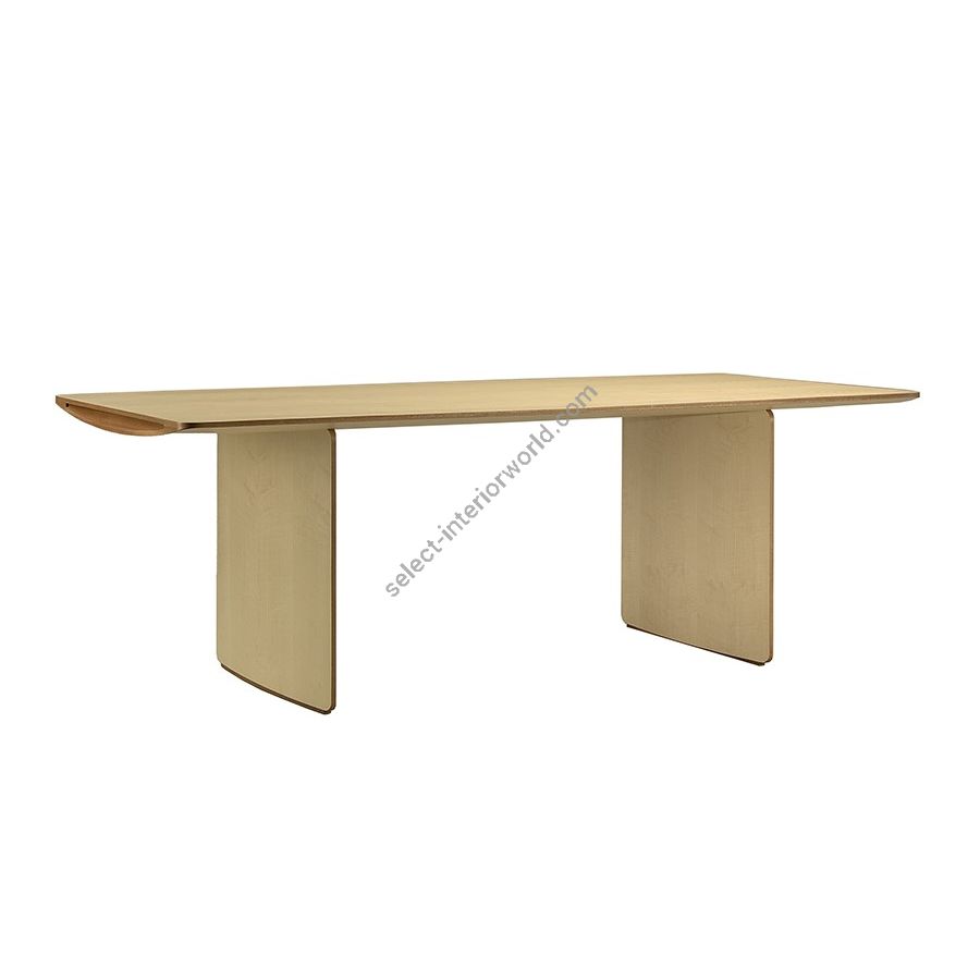 The Aero, designed by Franco Poli for Morelato, is a table consisting of two plywood panels, one of which is curved, joined together. This technique is used both for the top as well as for the feet of the table. In this way, the stability of the table is ensured even if the thickness is considerably reduced.