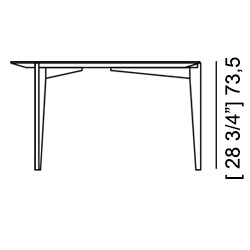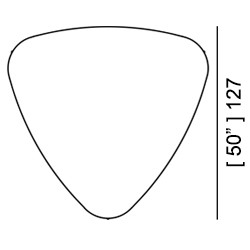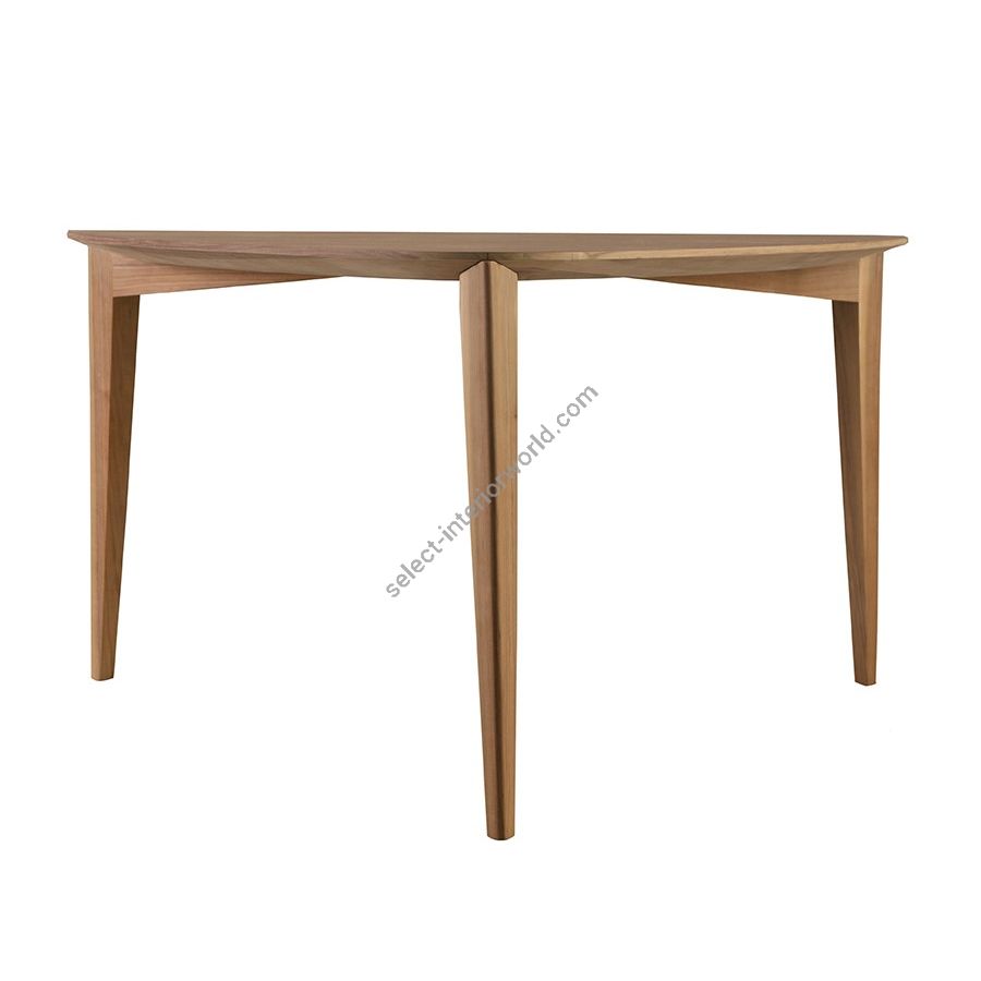 Trident abandons the classical forms and offers a new table model. Its name implies its main feature: it has three supporting legs. Trident is made of ash wood and has a peculiar triangular top with splayed edges, to bring out the slender legs, of triangular section.