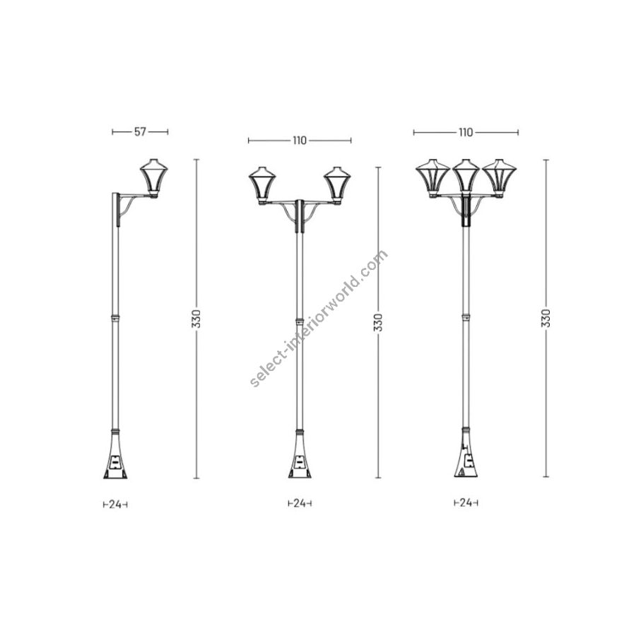 Available in single, double, or triple head configurations, Splendòr 2 offers unmatched versatility for residential or public outdoor spaces. Each head is mounted at a height of 330 cm, providing balanced and functional lighting that enhances pathways, entrances, and communal areas.