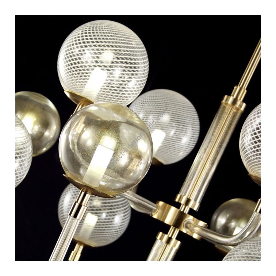 The precious mouth-blown glass spheres composing this lighting product are completely handmade by skilled glass masters and enclose the light source which also enhances the fine glass details.