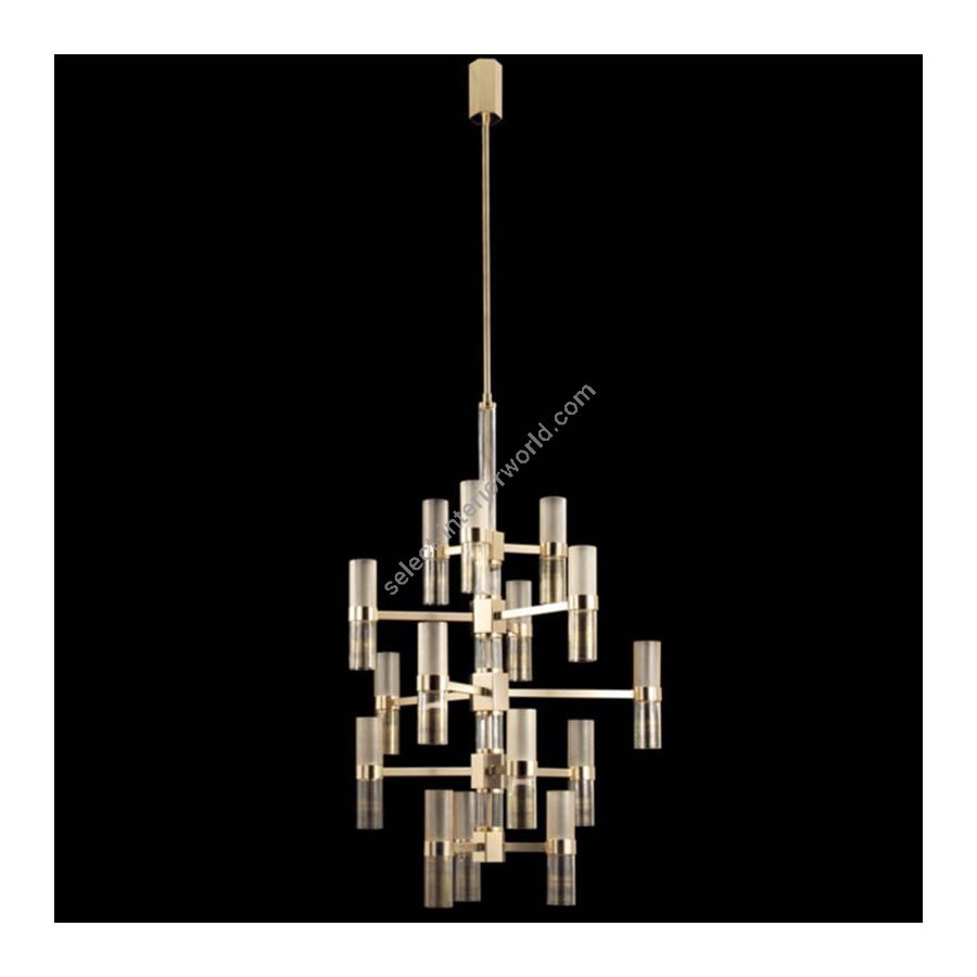 The elegant blown glass cylinders characterized by a pale gold color are alternated with transparent elements with gold leaf. These components enclose the latest-generation integrated LED light sources and recreate a warm and enchanting atmosphere.