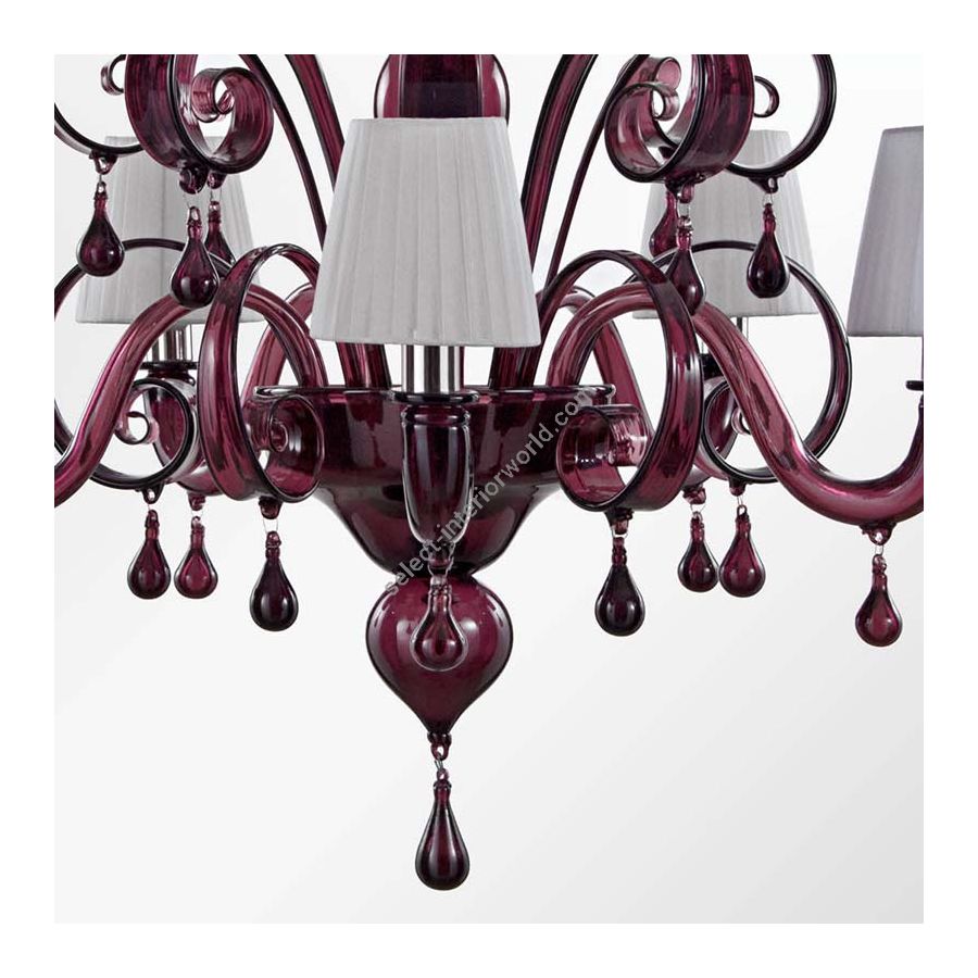 The Murano Parisienne chandelier is available in different colours: amethyst or grey. Two are the metal finishings available for this collection: gold or nickel plated.