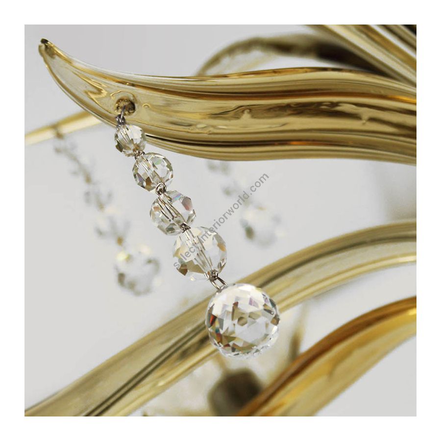 The luxury chandelier Tresor has been conceived as a jewel-like chandelier, it is the perfect solution to embellish spaces. It has been designed with attention to details: the smooth blown glass of extremely high quality is interrupted by some large Swarovski® crystal elements, and the metal shiny structure (in gold or nickel) is visible trhough the glass.