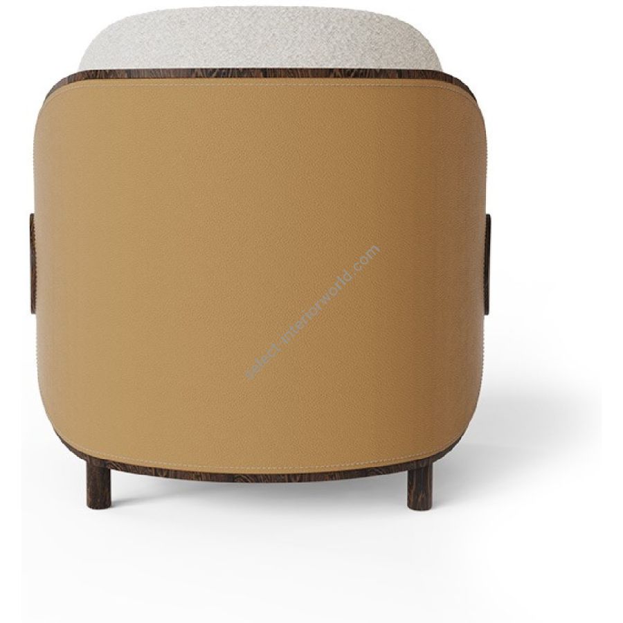 The Marie armchair stands out with its striking circular wooden frame, which not only provides stability but also enhances its visual appeal. The frame’s rich finish contrasts beautifully with the boucle fabric and leather accents, creating a harmonious blend of textures. Perfect for living rooms, bedrooms, or stylish office spaces, the Marie armchair adds a touch of artistic flair to any interior.