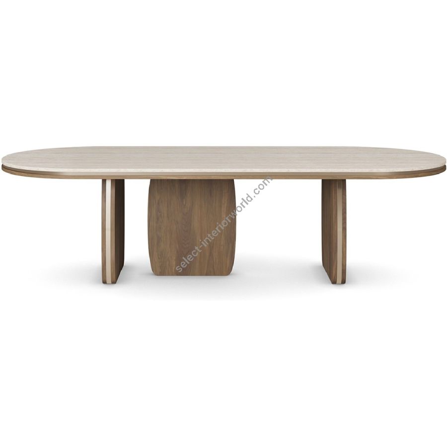 Assia II Dining Table from Nolita Harbour, now reimagined with walnut and travertine finishes. This sophisticated version showcases a smooth travertine tabletop paired with robust walnut sculptural legs, embodying a harmonious blend of natural textures and contemporary design. Perfect for elevating any dining space, the Assia Dining Table seamlessly combines functionality with artistic craftsmanship.