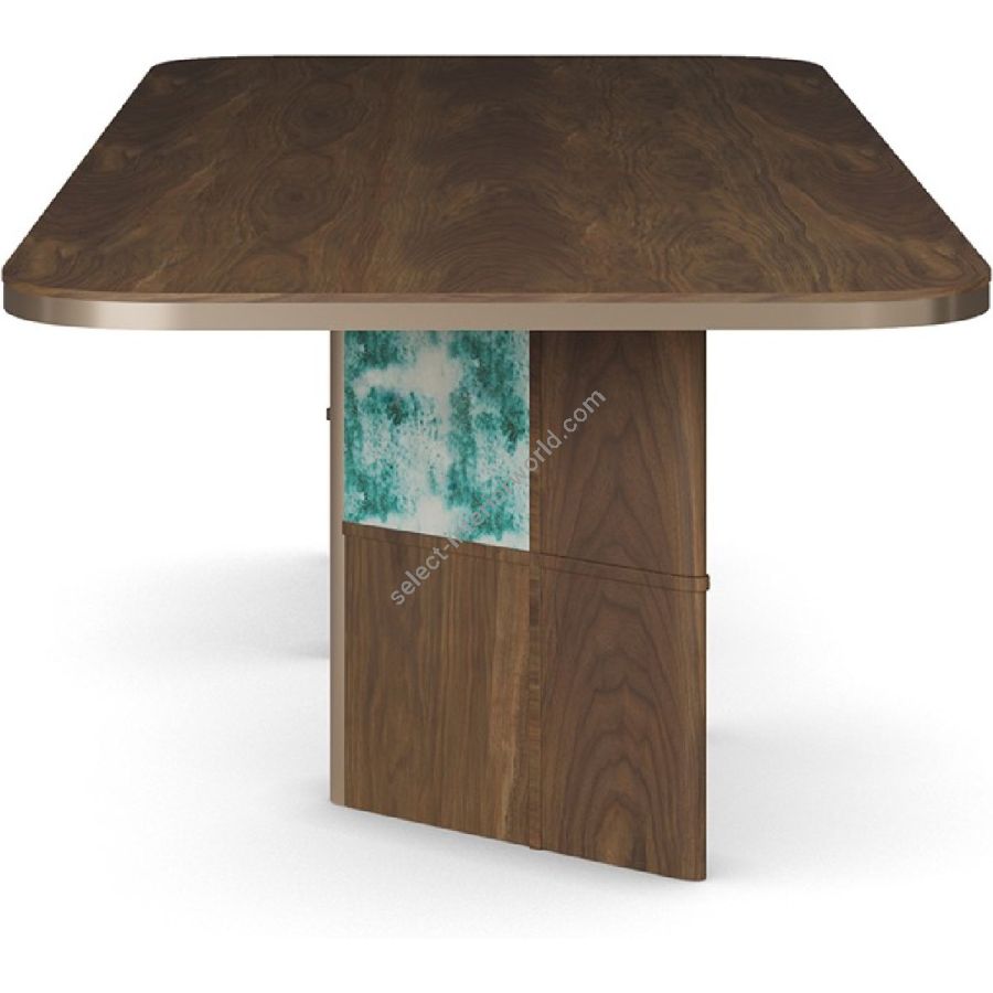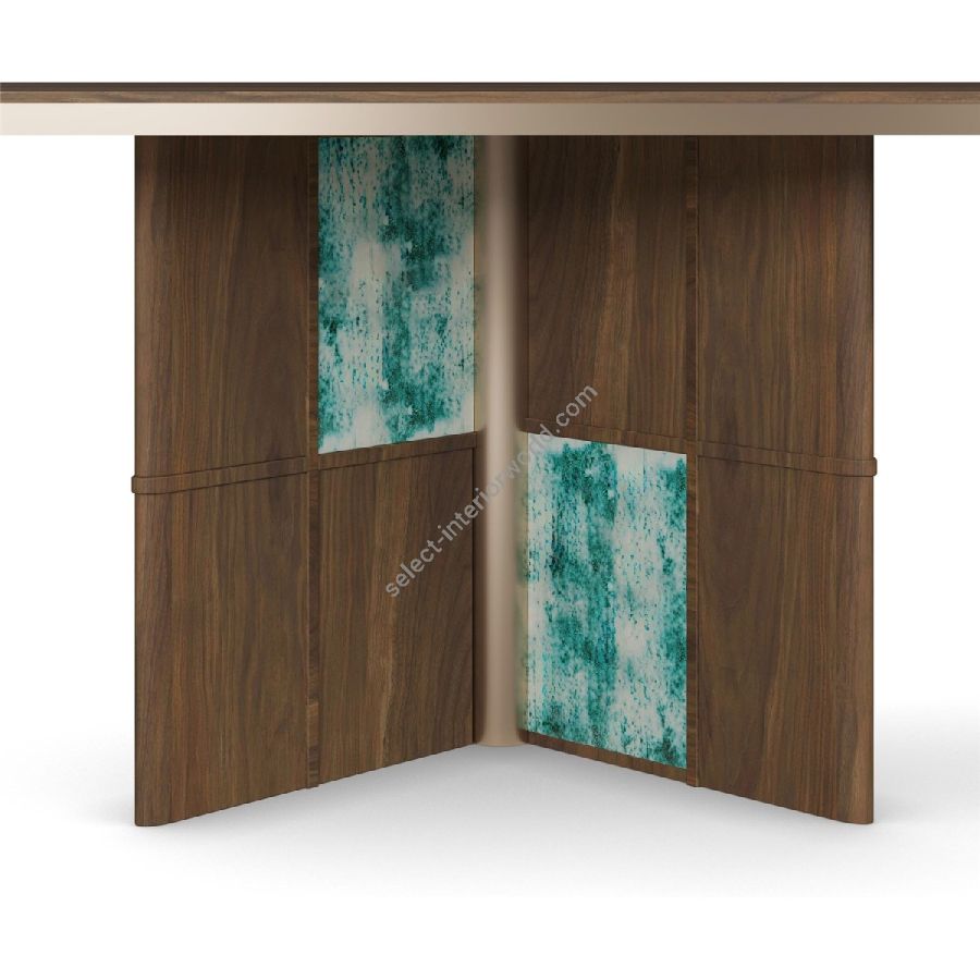Axelle Dining Table from Nolita Harbour is a masterpiece of modern craftsmanship, seamlessly blending luxurious materials, sculptural design, and artisanal detailing. At its core, the table features a sleek walnut tabletop with smooth, curved edges, exuding warmth and sophistication. The standout feature lies in its sculptural legs, adorned with striking green ceramic tiles that create a bold contrast against the rich walnut, adding depth and visual intrigue.
