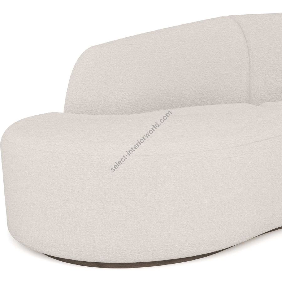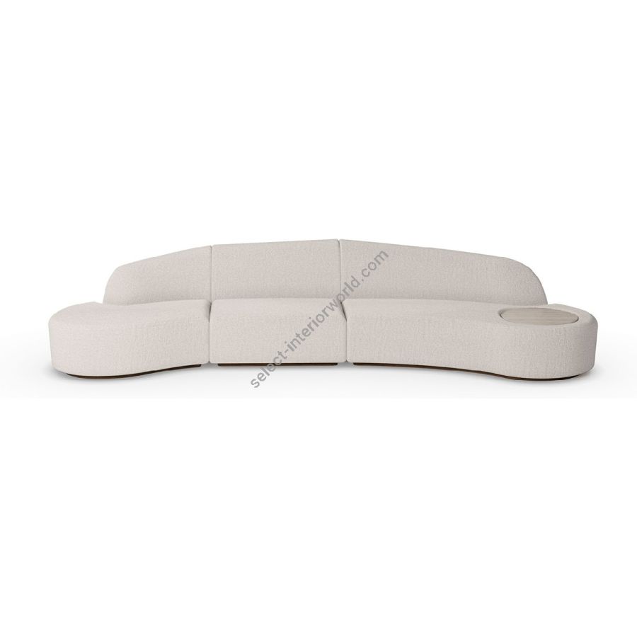 Nolita Harbour Nathalie II Sectional Sofa, an evolution of modern comfort and multifunctional design. This elegantly crafted sectional features plush, curved forms upholstered in luxurious boucle fabric, ensuring an exceptionally cozy seating experience. The distinctive feature of the Nathalie II is its integrated circular travertine top, functioning as a convenient side table, seamlessly blending style and functionality.