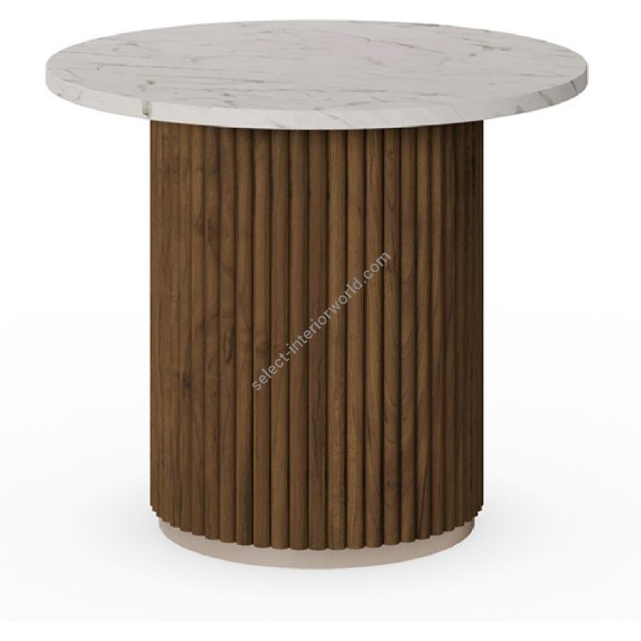 Nolita Harbour Roland Side Table, a seamless fusion of modern design and natural elegance. This impeccably crafted side table features a luxurious marble top, providing a sophisticated surface that complements any decor. The base is constructed from rich, fluted wood, adding texture and depth to the overall aesthetic.
