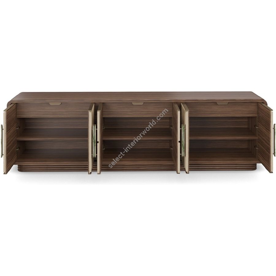 The Brielle sideboard exemplifies sophisticated design with its rich blend of materials and intricate detailing. Featuring an elegant ebony wood finish, the piece radiates a modern yet timeless appeal. Its textured plaster doors, adorned with subtle geometric patterns, add depth and character, making it a true centerpiece. The ceramic handles with brass detailing provide an artistic flair, making the Brielle sideboard not just functional but a work of art. Ideal for contemporary living spaces, this sideboard will enhance any room with its luxurious and refined aesthetic.