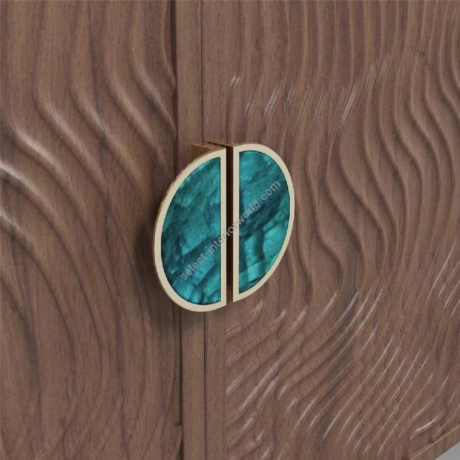 Nolita Harbour Henry Luxury Sideboard. This meticulously crafted piece combines modern design elements with classic elegance, making it a versatile addition to any interior. The Henry sideboard features a smooth walnut structure that exudes warmth and luxury. Its three doors are intricately designed with a wavy texture, creating a visually appealing pattern that stands out. The handles are adorned with elegant ceramic details, adding a touch of refined artistry.