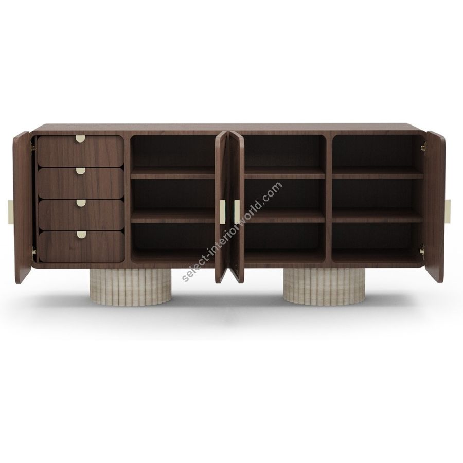 The sideboard is elevated by sturdy legs made from ribbed travertine, offering both stability and a unique design element. The combination of materials and textures makes this sideboard a functional art piece, perfect for storing your essentials while enhancing your decor.