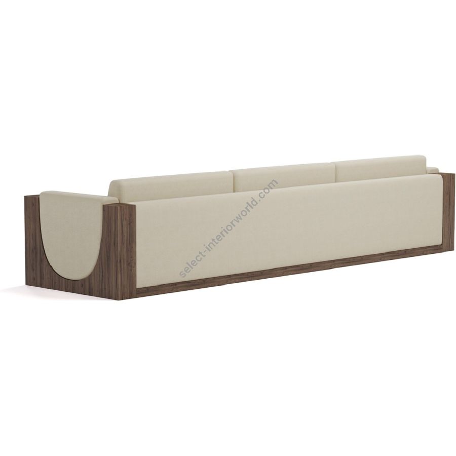 The sofa is framed by beautifully crafted walnut panels, adding a rich, natural element to its design. The walnut side panels and base provide a sturdy structure and a touch of elegance, enhancing the overall visual appeal.