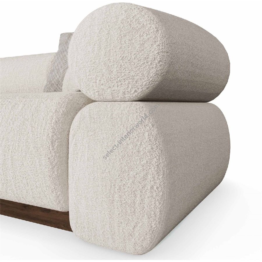 Nolita Harbour Soléne Sectional Sofa, a masterful blend of modern design and unparalleled comfort. This elegantly crafted sectional features plush, rounded cushions upholstered in premium fabric, ensuring a cozy and inviting seating experience. The sleek, minimalist lines of the Solene sofa are enhanced by its unique cylindrical armrests and sturdy wooden base.