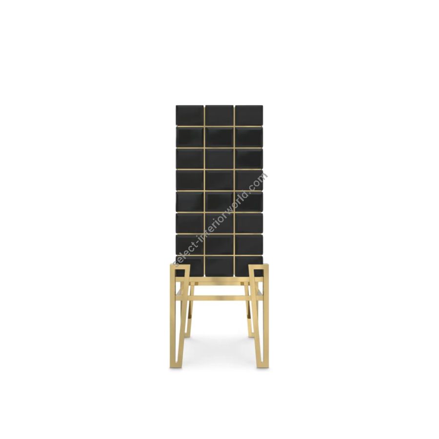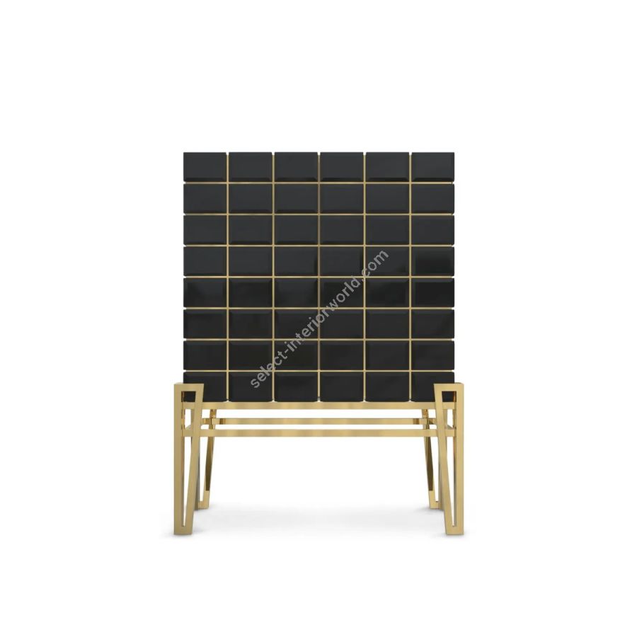 Drawing inspiration from the geometric Nubian pyramids, the Nubian Bar Cabinet presents a daring design and shape. Crafted with brass, glass, marble, and wood and featuring a mirrored interior, this piece is not only functional but also serves as a captivating decorative element. A true work of art that elevates any interior decor, whether a winery or a dining room.