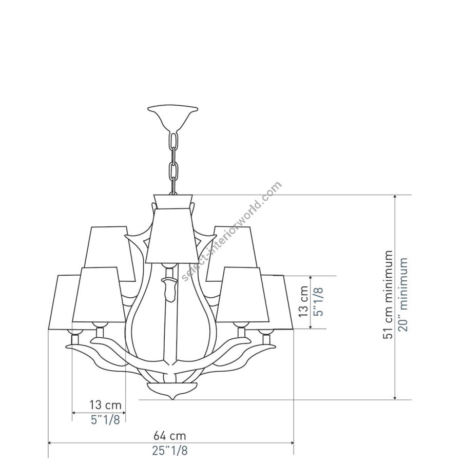 Width: 64 cm, Maximum: 9 x 40 w, Les Abat-jours peuvent être fabriqués dans 18 coloris au choix, The colour for the shades can be chosen out to 18 different hues