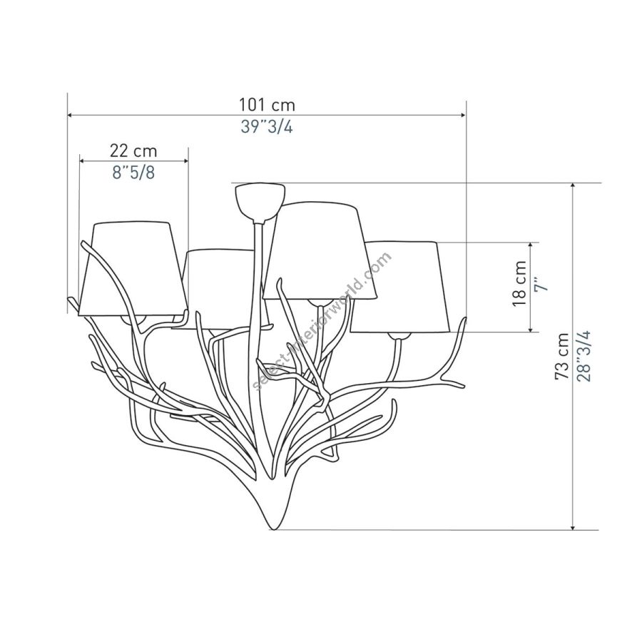 Width: 101 cm, Maximum: 4 x 100 w, Les Abat-jours peuvent être fabriqués dans 18 coloris au choix, The colour for the shades can be chosen out to 18 different hues