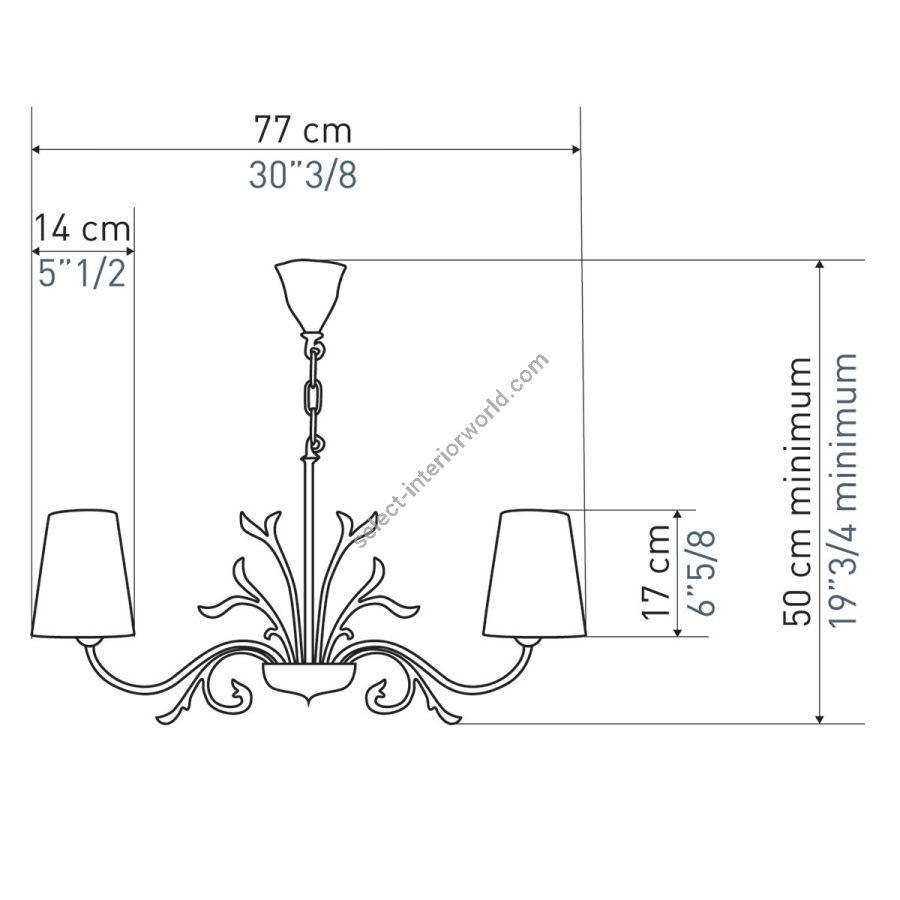 Height: 50 cm minimum, Width: 77 cm, Maximum: 4 x 40 w