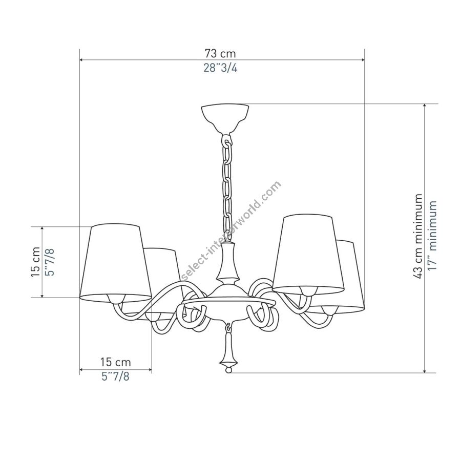 Width: 43 cm, Maximum: 4 x 40 w, Les Abat-jours peuvent être fabriqués dans 18 coloris au choix, The colour for the shades can be chosen out to 18 different hues