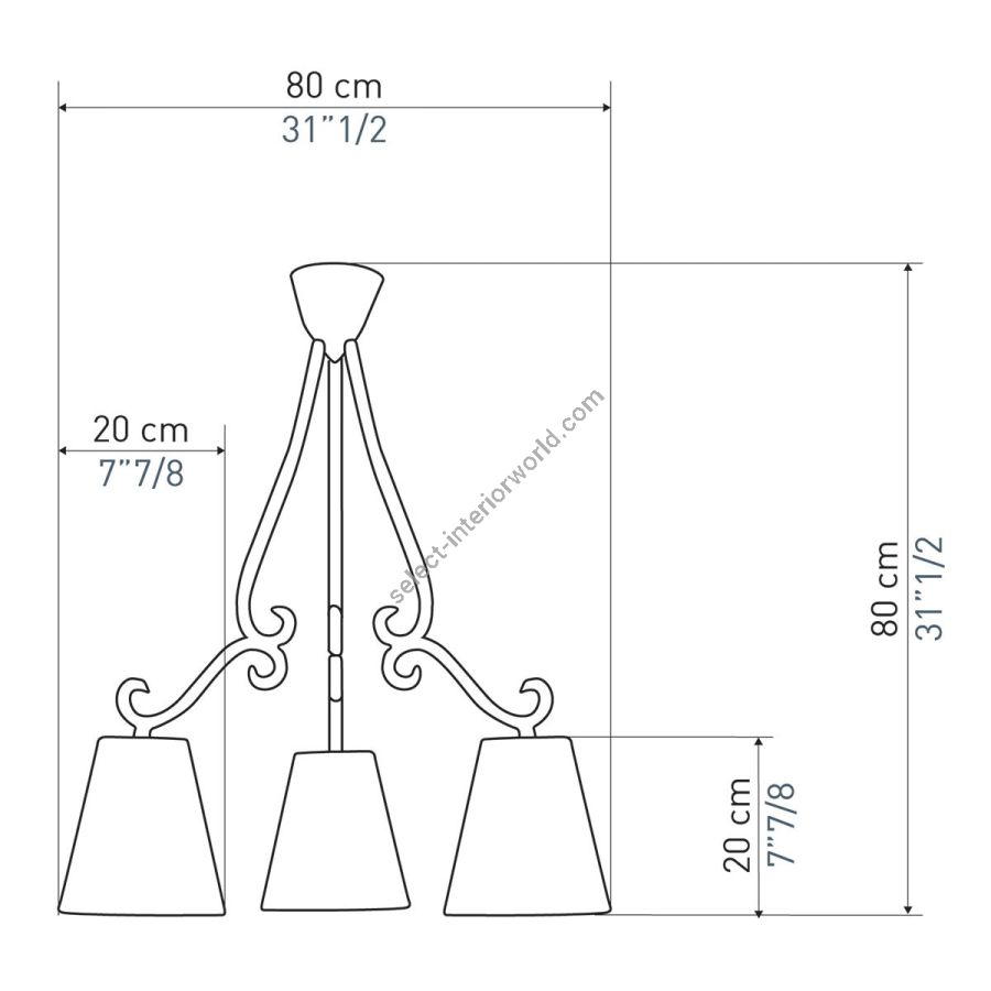 Width: 80 cm, Maximum: 3 x 60 w, Les Abat-jours peuvent être fabriqués dans 18 coloris au choix, The colour for the shades can be chosen out to 18 different hues