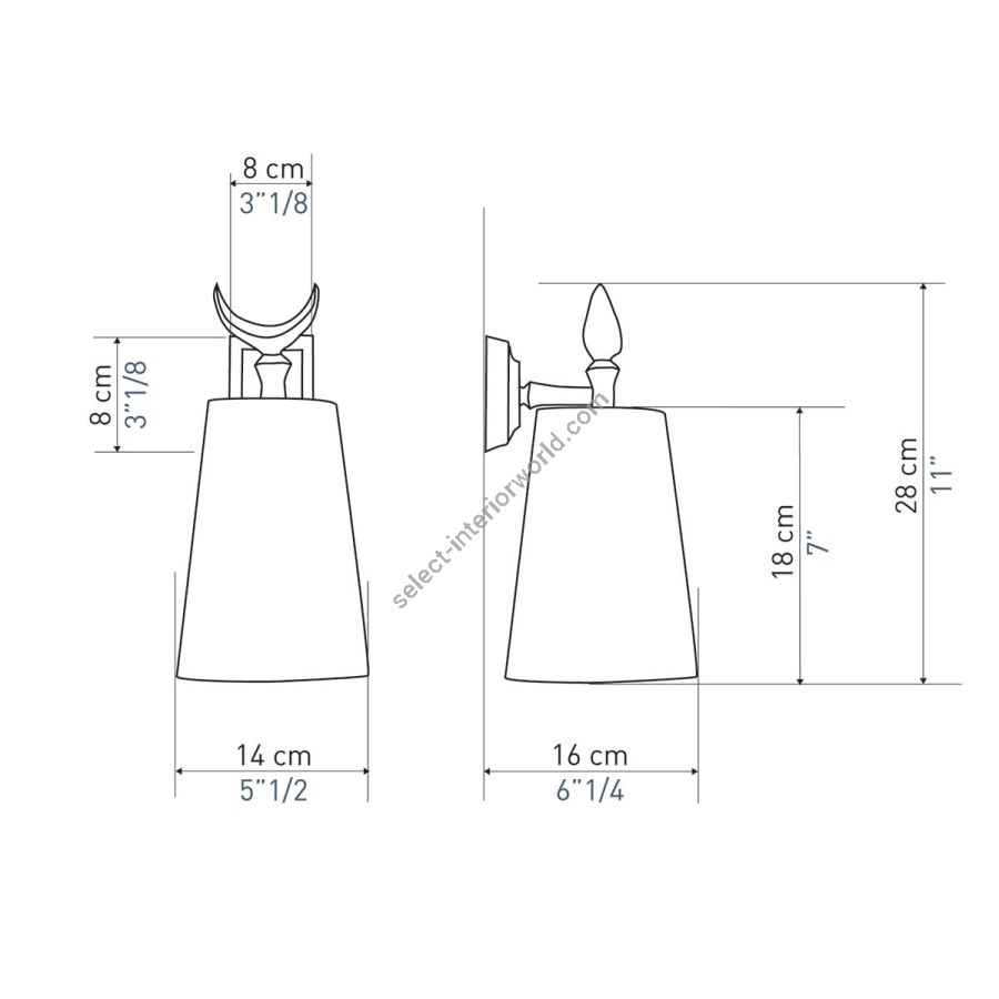Width: 14 cm, Projection: 16 cm, Maximum: 60 w, Les Abat-jours peuvent être fabriqués dans 18 coloris au choix, The colour for the shades can be chosen out to 18 different hues