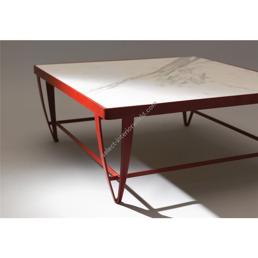 Square coffee table inAISI 304 with Statuario marble top, powder-coated. Design by: OFFICINACIANI & Studio63
