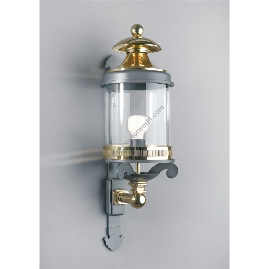 Iron and brass wall lantern with glass cylinder Lights: 1 X 60W E27
