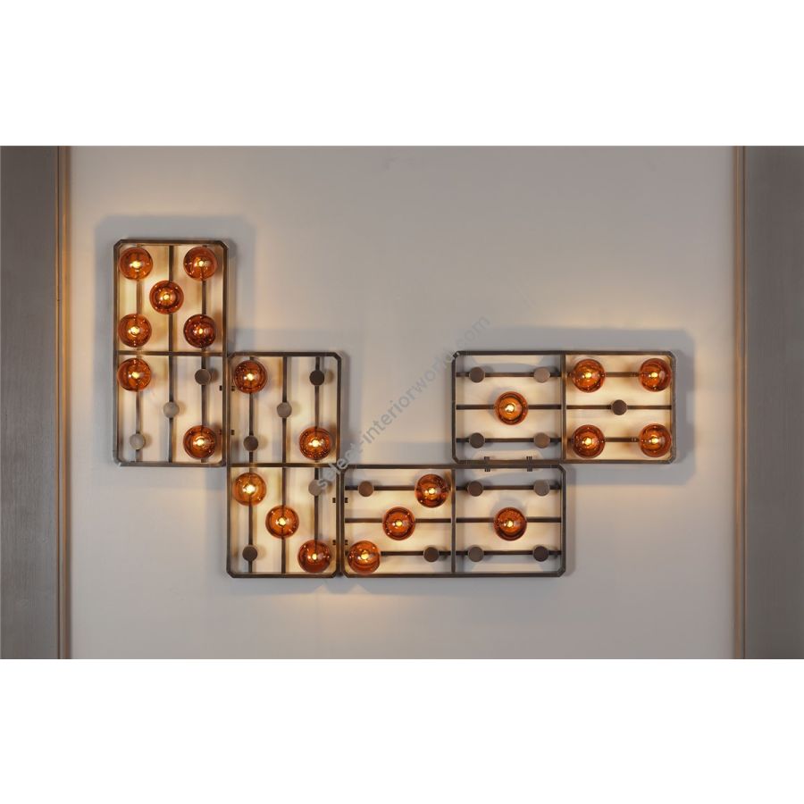 Brass modular wall lamp “Domino” with Amber glasses spheres Light : Alog. G9 variable number