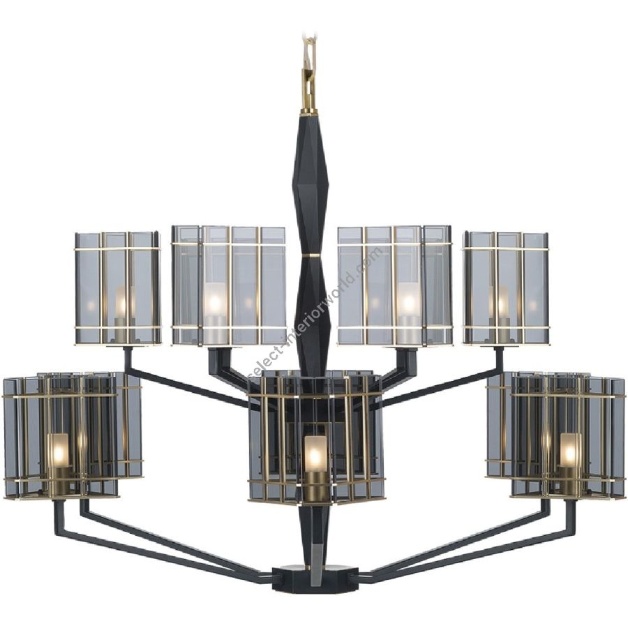 Top Glass collection, a sophisticated line where the matte black finish designs geometries on the solid faceted structure and the shades are composed of glass elements in golden cages.