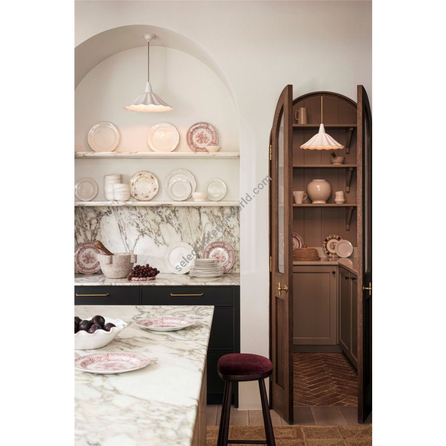 The Christie 36 Pendant represents an evolution of our beloved Christie pendant. Slightly reduced in diameter and with a steeper fall than the classic Christie shade, it casts a more focussed beam immediately below the fixture. Inspired by gently rolling ocean waves, the handmade bone china shade’s corrugated outline adds a playful focal point in any room.
