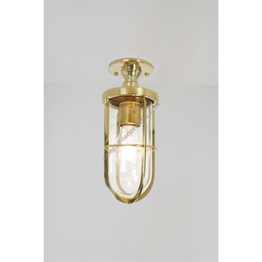 This Ship's Well Glass Ceiling Light is desgined and manufactured with the same attention to detail required for its original industrial purpose. Able to withstand extreme weather conditions, this fixture is IP54 rated. Available in polished brass, weathered brass or chrome plated, with a choice of clear or frosted glass.