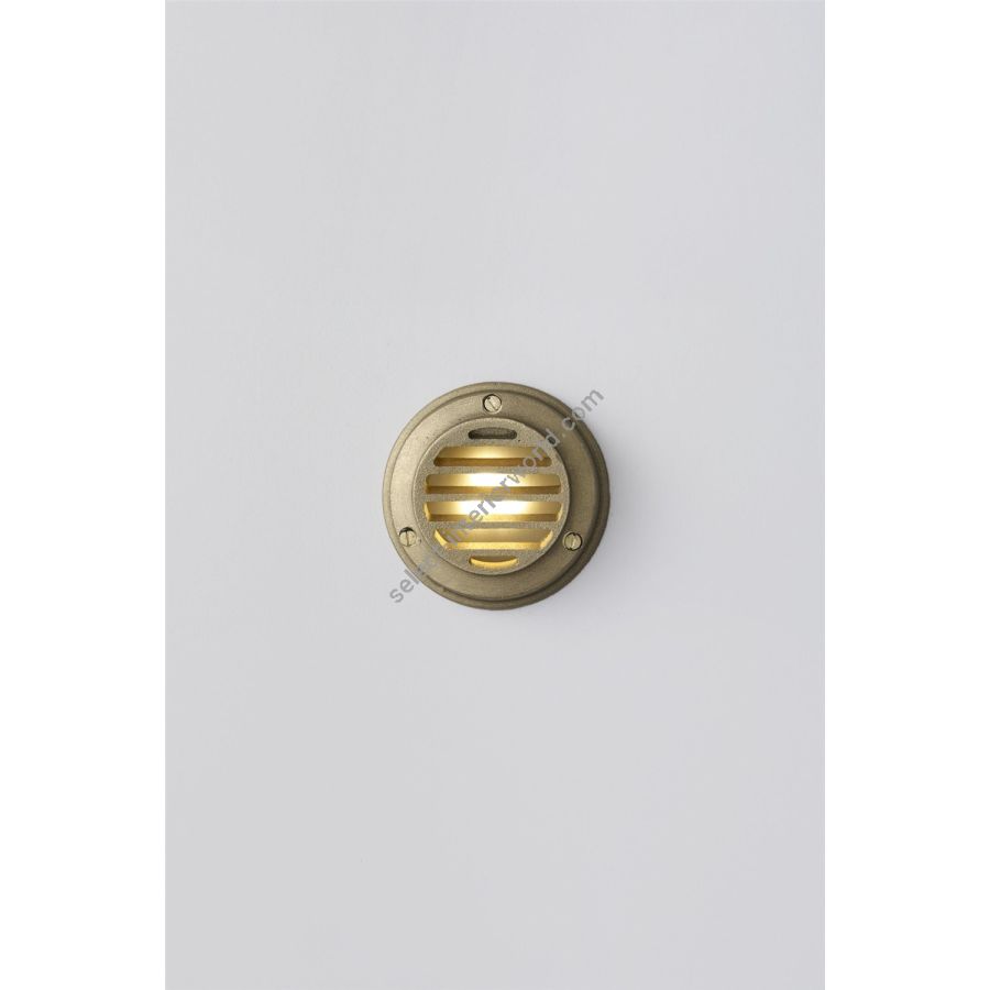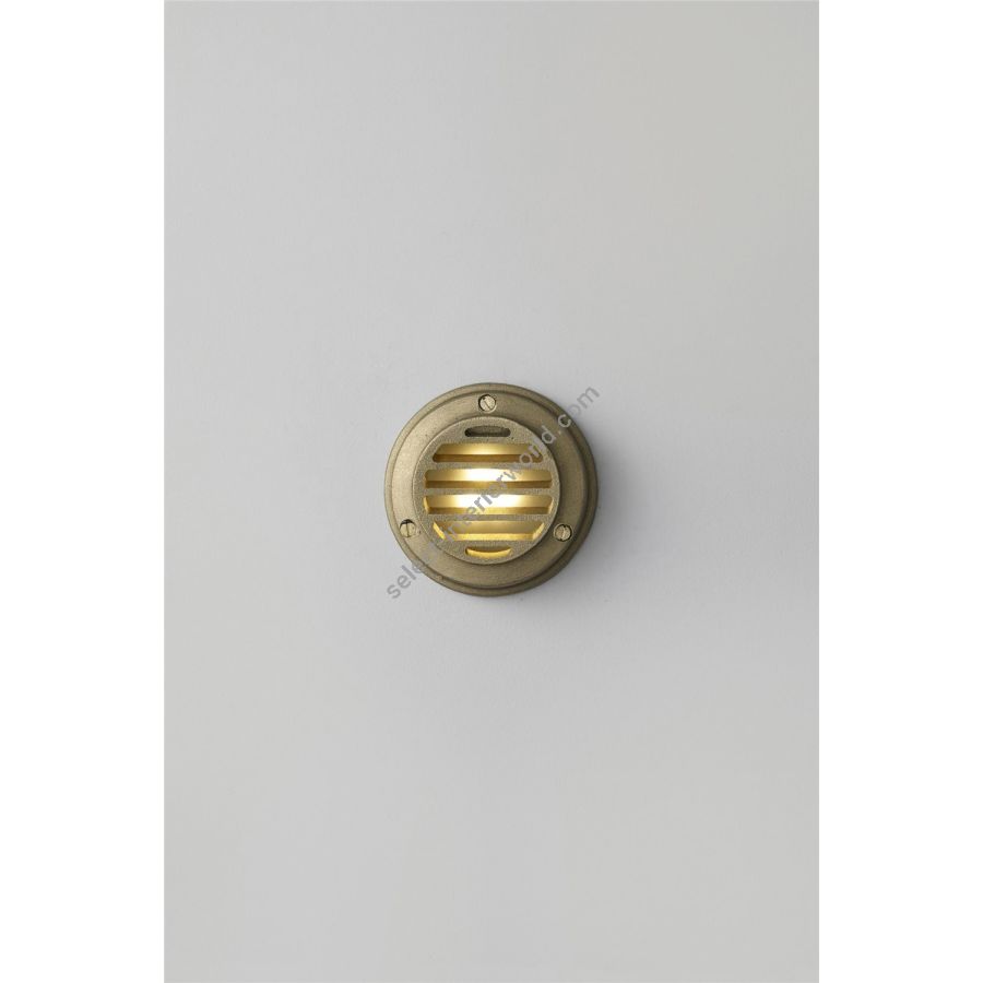 Low Voltage Step or Path Light for surface mounting, available in a sandblasted brass or weathered brass finish. Frosted glass diffuser. This product requires an additional low voltage halogen transformer to connect to a standard mains voltage circuit.