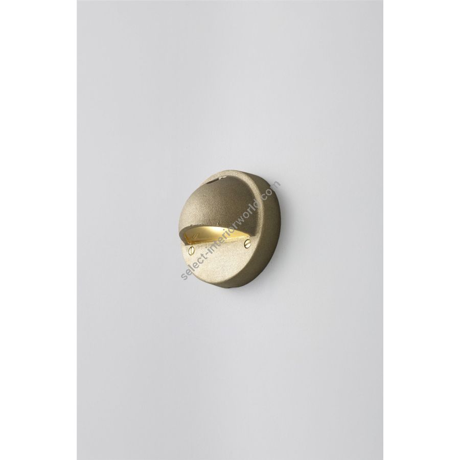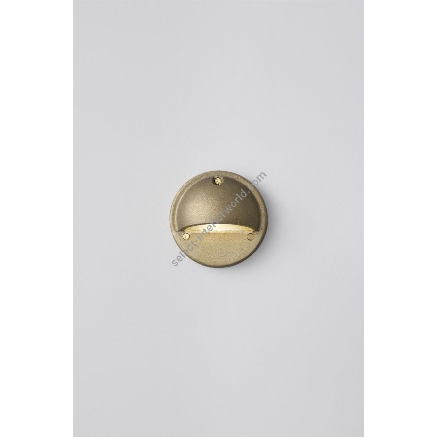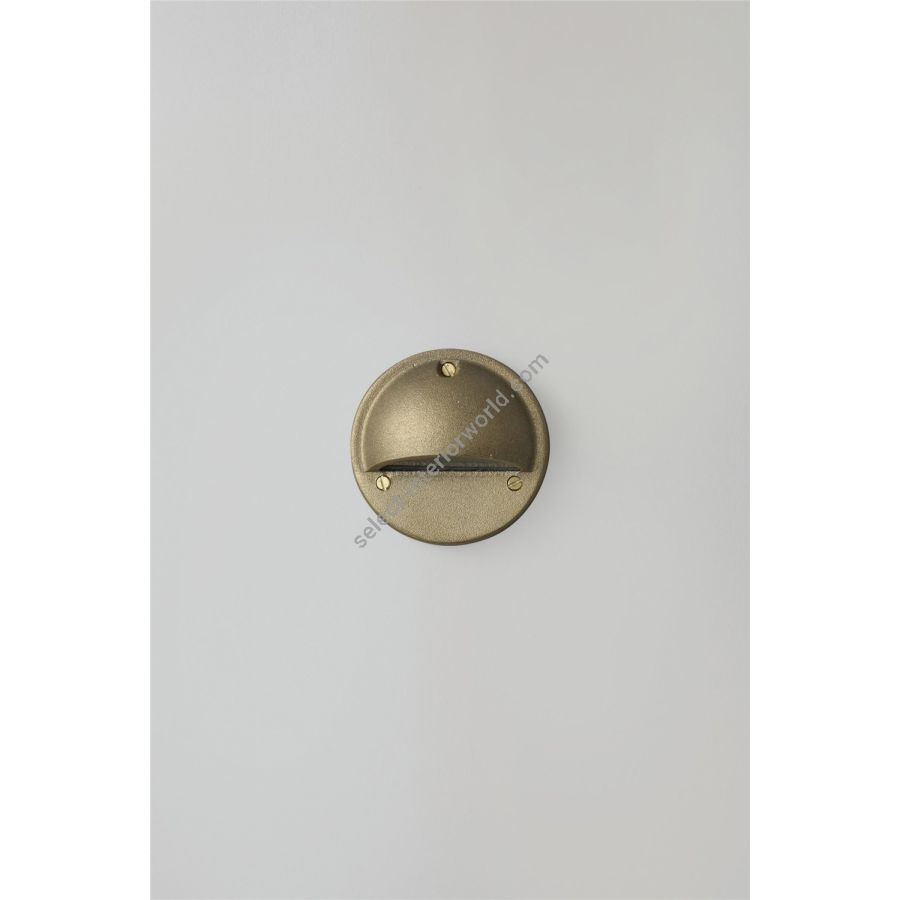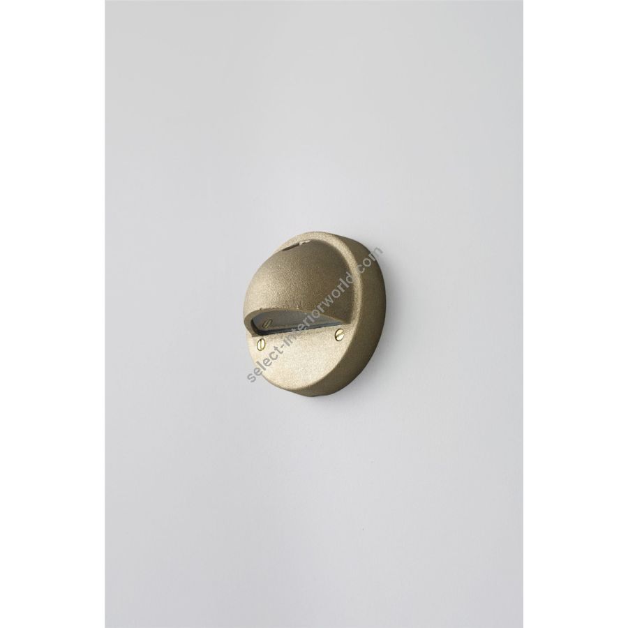 Low voltage step or path light for surface mounting. Cast brass, available in a sandblasted brass or weathered brass finish. Frosted glass diffuser. This product requires an additional low voltage halogen transformer to connect to a standard mains voltage circuit.