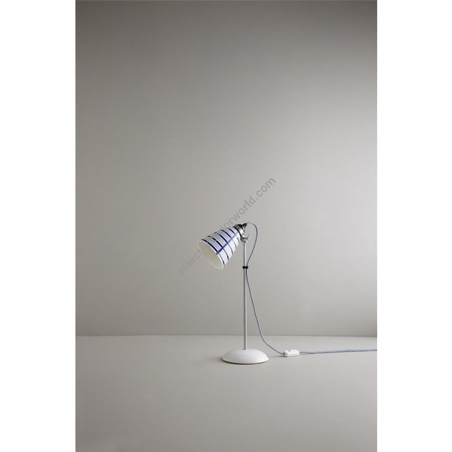 The Circle Line Table Light has a skillfully hand painted monochrome shade, making each product unique. Finished with a matching black & white cotton braided cable, and bold base. Also available as a pendant, floor and wall light. Also available in blue.