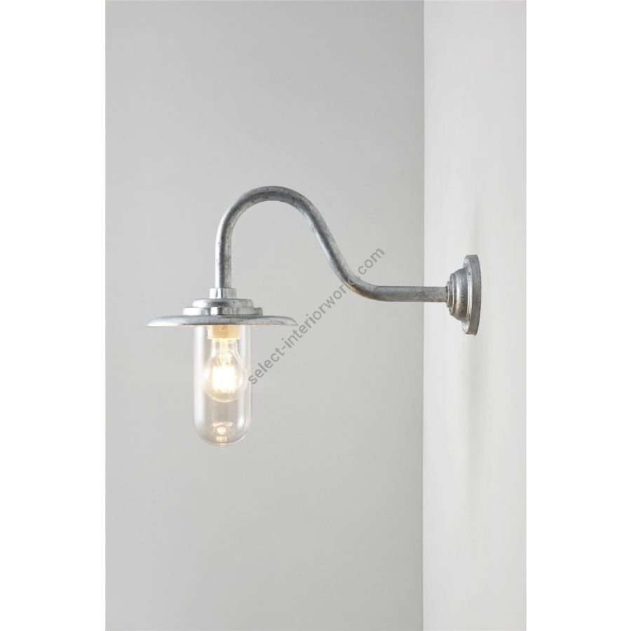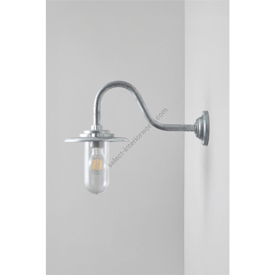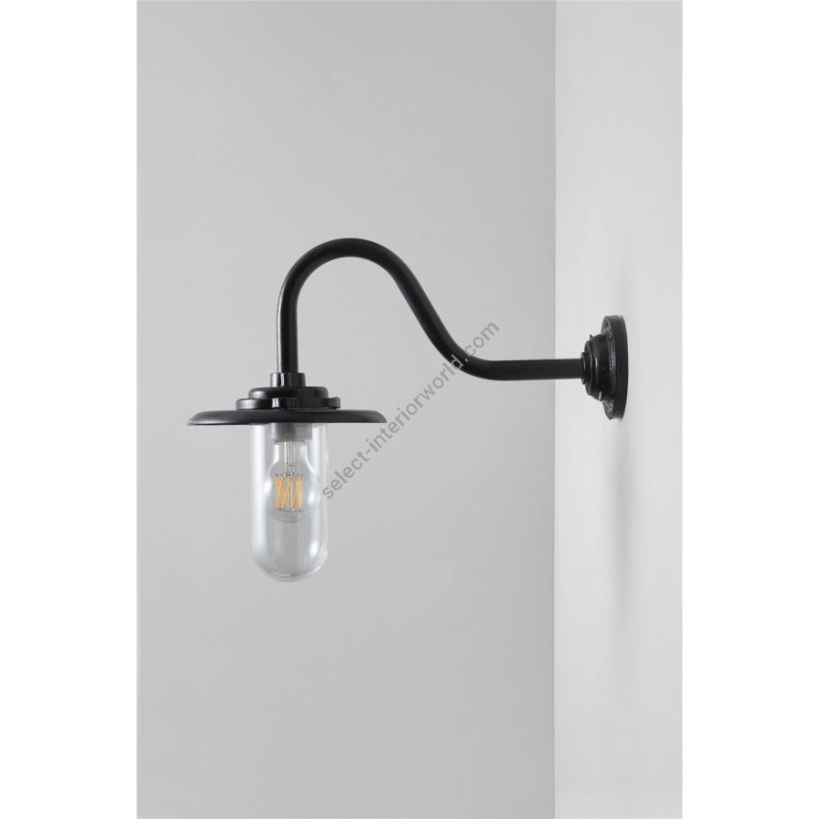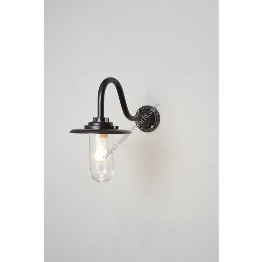 An Exterior Bracket Light (with reflector) with swan neck arm and round base is a traditional marine inspired fixture. Skillfully cast at our Birmingham metalworks and rated IP54, this is the perfect outdoor wall light. Available in galvanised or black. Galvanised guard sold separately. N.B. This product is galvanised underneath so the paint finish will not be completely smooth.