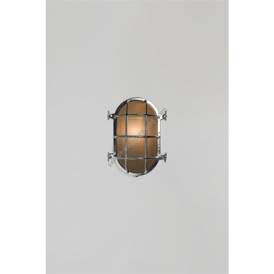 A traditional die-cast brass bulkhead light with frosted, prismatic glass diffusers from Davey's original catalogue. Available in three different finishes - natural brass (unlacquered), weathered brass and chrome plated - and three sizes. Front guards secured by four wing nuts. Glanded surface cable entry.