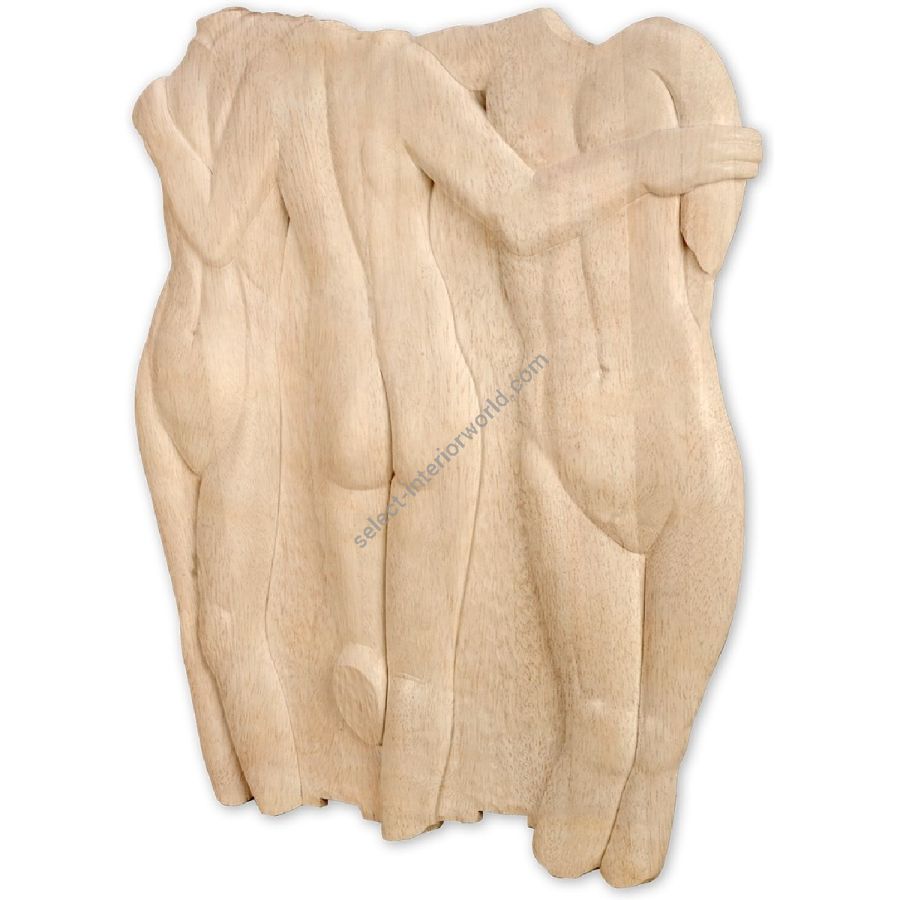 A fabulous hard wood carving depicting the Three Graces, the ancient Greek personifications of charm, beauty and creativity, all abundantly represented in this extraordinary Renaissance style wall relief.