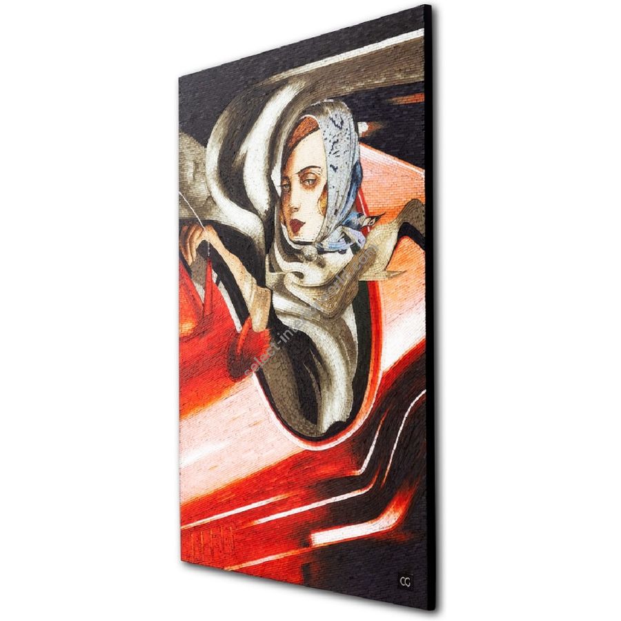 Taking inspiration from the Art Deco artist Tamara de Lempicka, this truly spectacular mosaic depicts the painter’s legendary Autoportrait at the wheel of a Bugatti racing car. Sparkling with the thousands of hand cut, hand colored glass tiles that make up the Christopher guy mosaic artworks, this is a piece to astonish and delight.