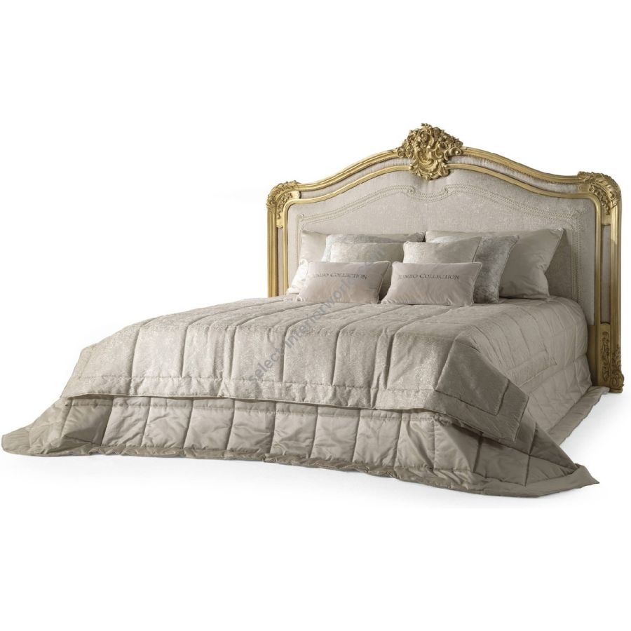 Chaine is a classic French style bed that perfectly expresses the heritage of Jumbo Collection brand, in which attention to detail, craftsmanship and precious materials prevail. The sumptuous headboard in hand-carved beechwood with a patinated antique gold finishing features a padding with embroidery that continues the sinuous line of the headboard. An elegant and sophisticated bed, perfect for setting in a royal and sumptuous style.