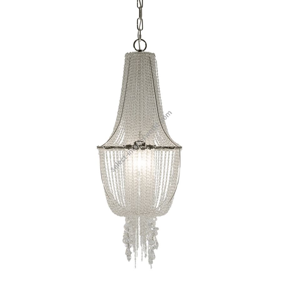 The strings of crystals are exclusively transparent and enriched by irregular elements of different shapes. A coup de theatre of great effect.