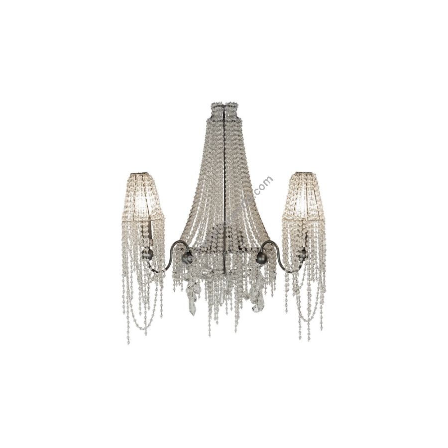 The strings of crystals are exclusively transparent and enriched by irregular elements of different shapes. A coup de theatre of great effect.