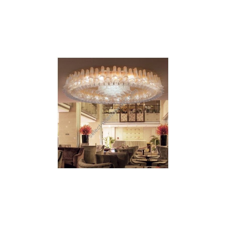 Handcrafted cast murano glass petals, available in the following finishes: white, amber and pink.