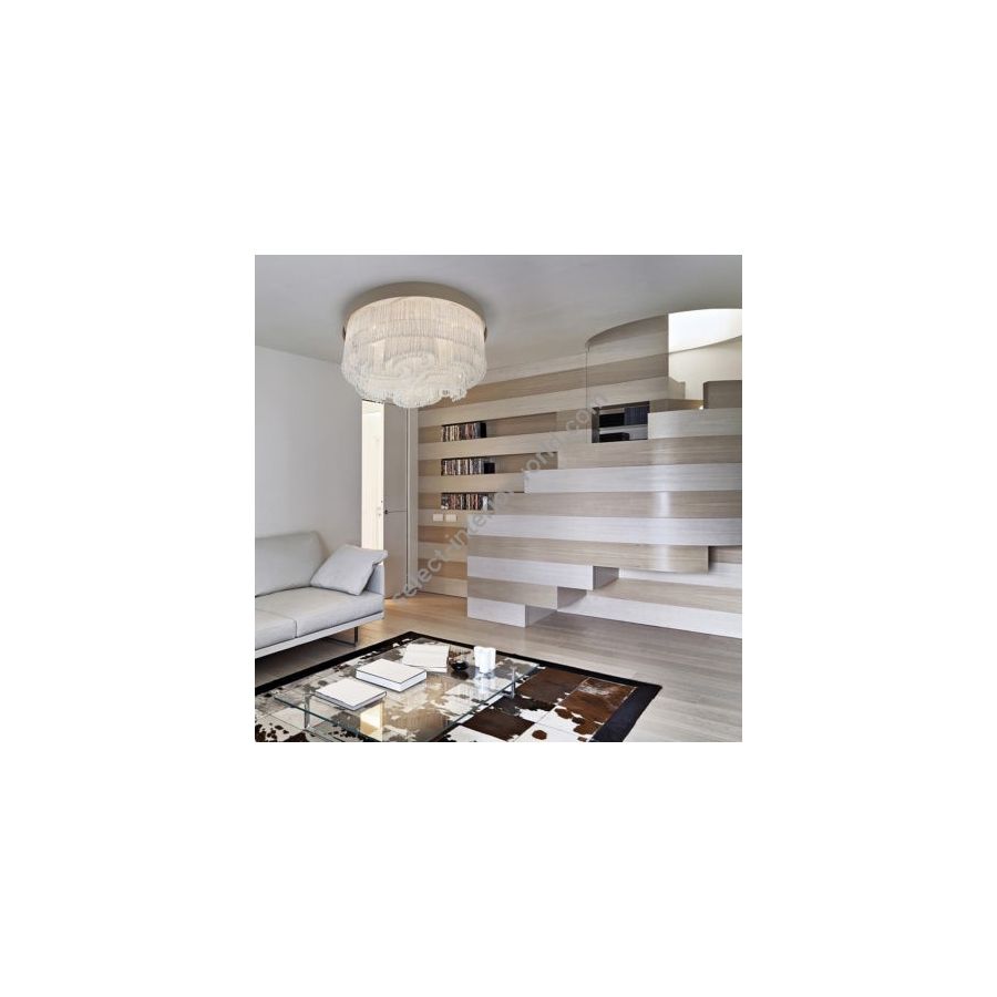 Elegant ceiling light witha fringe made of murano glass beads entirely handcrafted according to the venetian tradition. Available in 2 colours