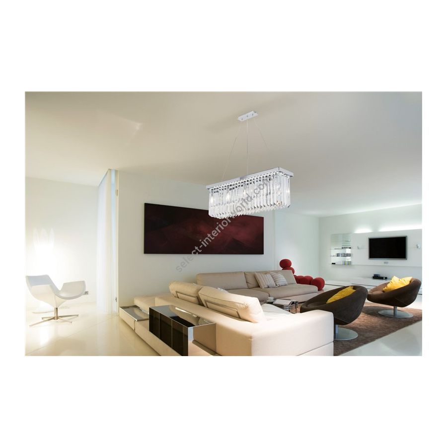 Rectangular led chandelier with a modern and refined style. Structure with polished chrome or 24 karat gold finish.