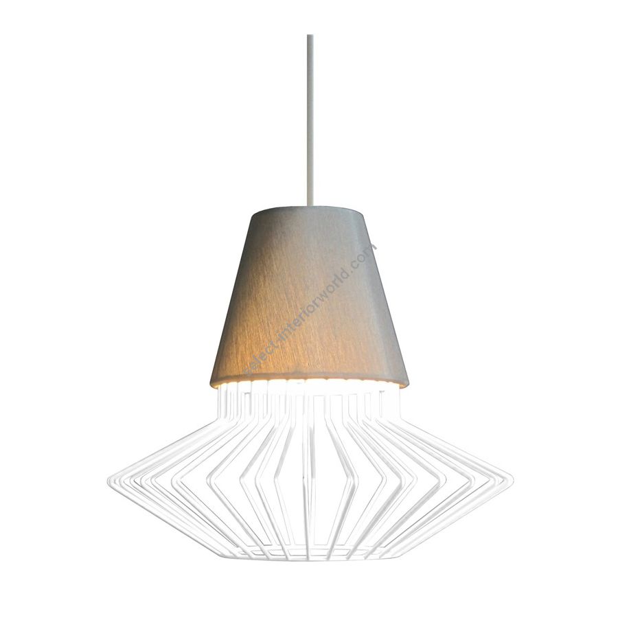 Pendant lamp with a metal frame, a lampshade and a decorative cage available in different finishes. Modern and sophisticated design.