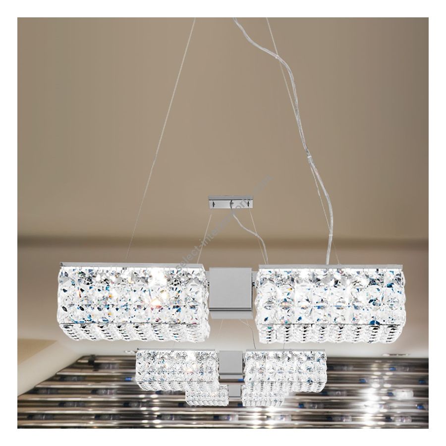 Crystal pendant lamp with a modern design and polished gold or chrome finish. Luxury chandelier in pure crystal. Find out more!
