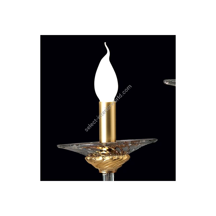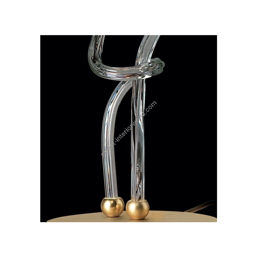 Table lamp with wide arms made of murano glass available in two colours and crystal bobeches.